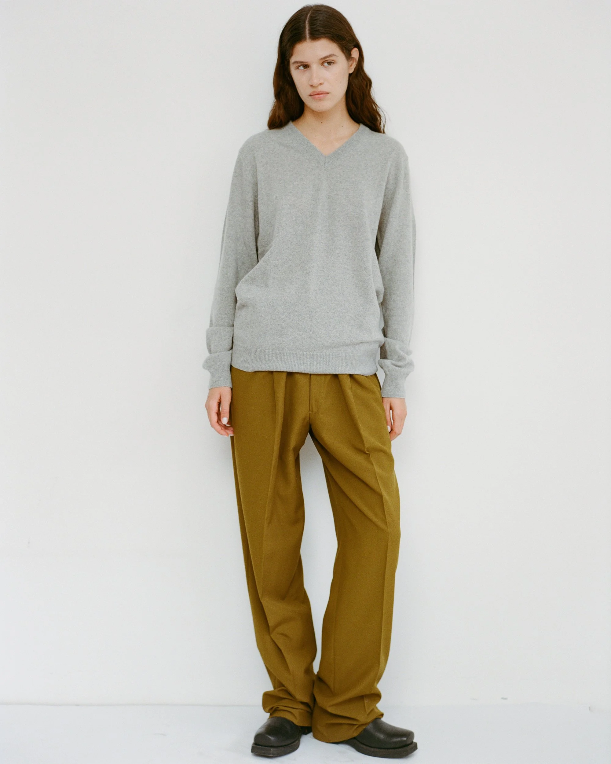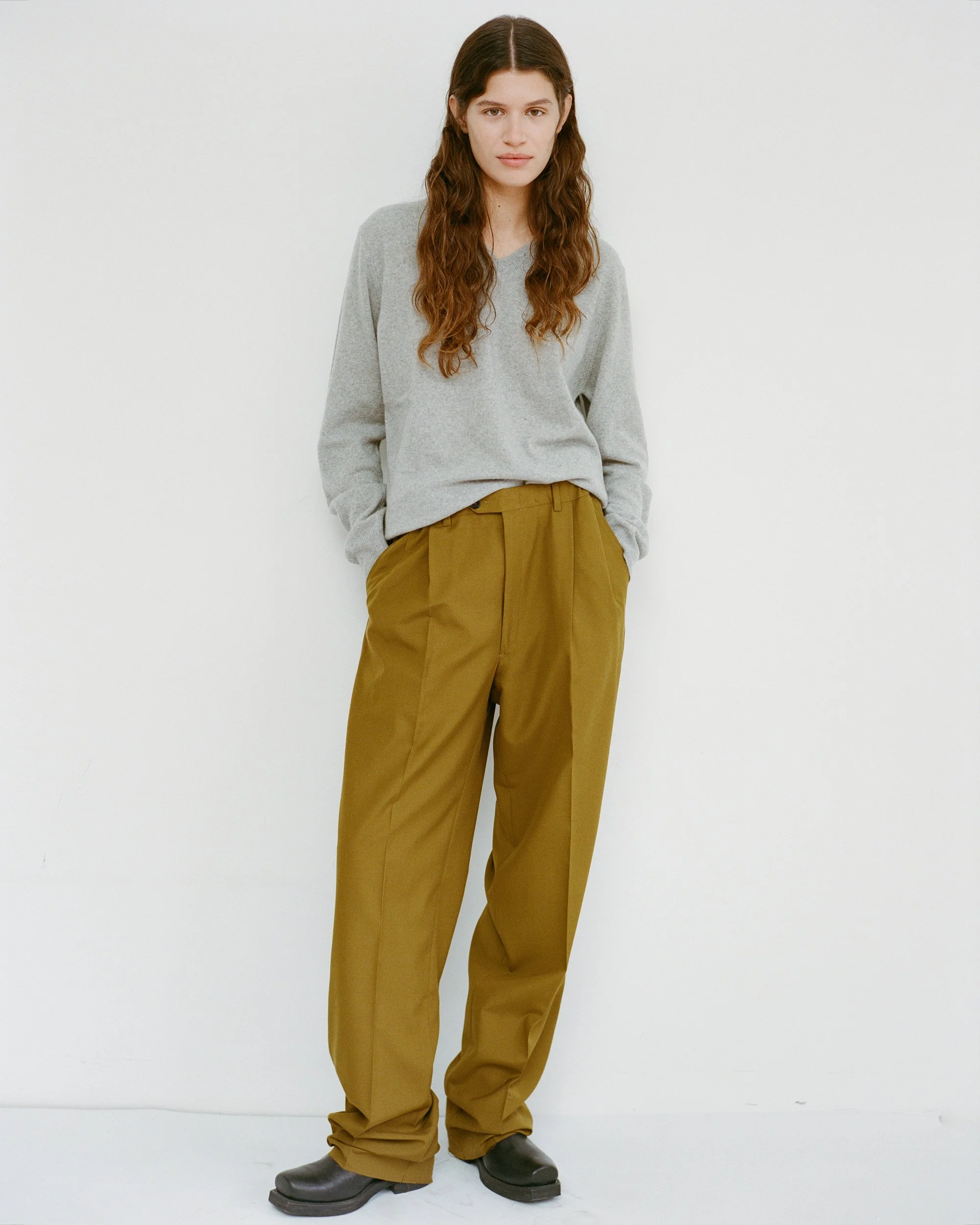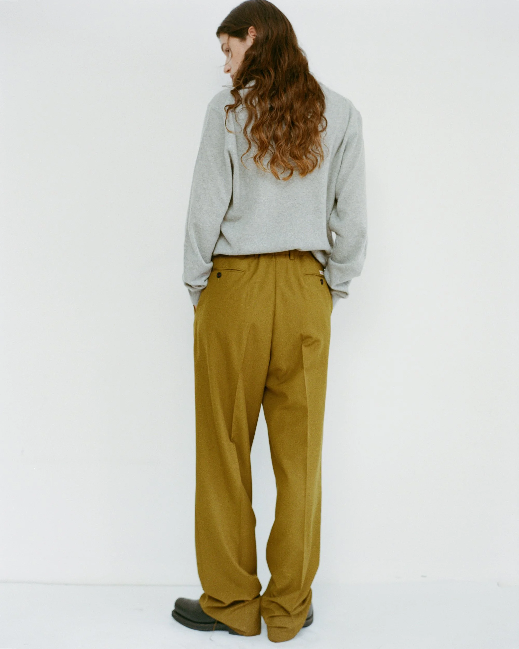 Virgin Wool Deep Pleated Trousers with regulated elastic waist